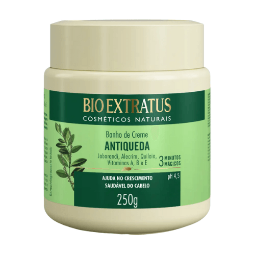 O Banho de Creme Antiqueda Bio Extratus Jaborandi 250g é indicado para os cabelos com pouco crescimento e queda frequente. Sua fórmula possui jaborandi, quilaia e alecrim, que atuam diretamente no bulbo capilar, estimulando o crescimento saudável e auxiliando o tratamento antiqueda. Os fios ficam mais fortalecidos e nutridos.