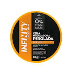 Antes de iniciar o processo de estilização, certifique-se de que o cabelo esteja limpo e seco ou levemente umedecido. Coloque uma pequena quantidade da Cera Modeladora Perolada Infinity na palma da mão, ajustando a quantidade conforme o comprimento e a espessura dos fios. Recomendamos começar com uma porção pequena e adicionar mais, se necessário.