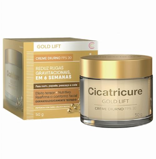 Anti-idade diurno para todos os tipos de pele. Cicatricure Gold Lift Diurno oferece efeito tensor, nutritivo e redefine o contorno facial.