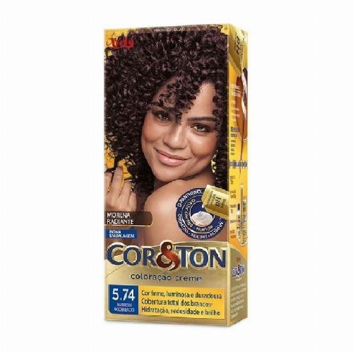 A Coloração Cor & Ton 5.74 Marrom Acobreado Com sachê de tratamento Fixacor com pH baixo, que finaliza o processo de colorir, selando as cutículas e deixando as cores mais firmes e duradouras, além de melhorar a textura e a maciez dos fios. A combinação perfeita do D-Panthenol, Queratina, Silicone e Filtro UV garante também nutrição, brilho intenso e o aspecto saudável dos fios.
