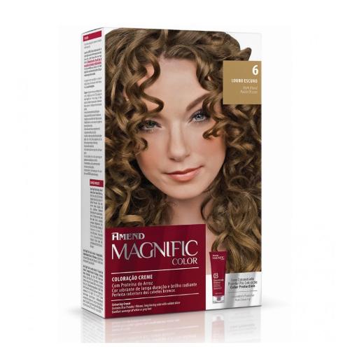 A Coloração Creme Amend Magnific Color 6 Louro Escuro proporciona uma perfeita cobertura dos cabelos brancos. Sua fórmula contém proteína do arroz, que promove proteção e restauração dos fios. Conta com um concentrado protetor para ser utilizado após a coloração, que proporciona reposição da massa capilar e aminoácidos de forma profunda. Realiza a coloração dos fios de forma uniforme e sem prejudicá-los, deixando os cabelos macios e um resultado impecável.