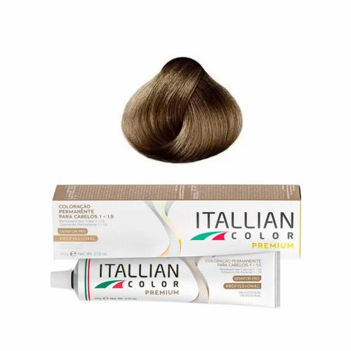 COLORAÇÃO PREMIUM PERMANENTE 60G ITALLIAN COLOR A coloração Permanente Premium Itallian Color atinge o núcleo do cabelo proporcionando uma cor homogênea, de longa duração e muito brilho. Sua fórmula possui alta concentração de pigmentos capazes de realizar a cobertura de 100% dos fios brancos. Essa perfeita combinação de substâncias propicia uma cor uniforme, luminosidade e intensidade. A ampla variação de tons favorece infinitas combinações de cores para os cabelos. Exclusivo sistema de coloração 1+1,5 com baixo teor de amônia e corantes de alta tecnologia resistentes à luz e lavagens, garante alta qualidade ao produto. Composta por 75 cores misturáveis entre si, permite a criação de infinitas nuances tornando únicas as criações do profissional cabeleireiro. Além de proporcionar 100% de cobertura dos cabelos brancos. Ativo da coloração: O DENSFOR PRO é a combinação de peptídeos que estimulam o metabolismo celular, associado a uma combinação de flavonoides e ácido retirado da folha da oliveira que atuam no estímulo do couro cabeludo e Vitamina E com ação antioxidante. Este ativo atua no couro cabeludo aumentando a microcirculação do folículo piloso proporcionando emoliência e fortalecimento dos fios. Brilho acentuado Proporciona umectação e emoliência aos fios DICA DE APLICAÇÃO: Para cabelo com alto percentual de brancos: Misture 60g de Coloração Itallian Color com 90ml de Itallian Oxi 20 ou 30 Volumes, de acordo com o diagnóstico profissional. Aplique e deixe em pausa por 40 minutos. Para cabelo natural: Misture 60g de Coloração Itallian Color com 90ml de Itallian Oxi 20, 30 ou 40 Volumes, de acordo com o diagnóstico profissional. Aplique sobre os cabelos, deixando em pausa por 35 minutos. Retoque de raiz: Misture 60g de Coloração Itallian Color com 90ml de Itallian Oxi 20, 30 ou 40 Volumes, de acordo com o diagnóstico profissional. Aplique na raiz e deixe agir por 25 minutos. Após esse tempo, aplique o restante da mistura no comprimento e pontas e deixe em pausa por mais 10 minutos. Importante: O tempo total de aplicação não deve ser superior ao indicado. Utilize sempre Itallian Oxi de 20, 30 ou 40 Volumes e siga a proporção recomendada de 1 + 1,5. Escolha a técnica de aplicação e a volumagem do oxidante de acordo com o resultado desejado e com as condições do fio. Nesse ponto, o diagnóstico profissional é essencial. ESSE ANÚNCIO CONTÉM: 01 Coloração 8.1 Louro Claro Cinza | Itallian Color
