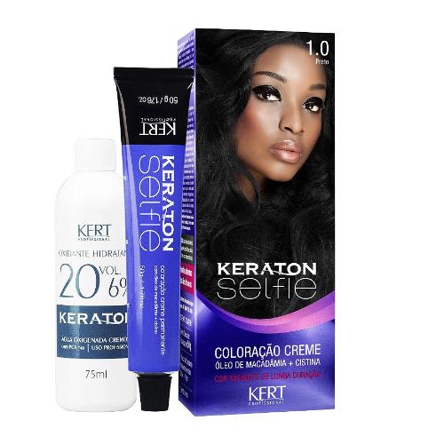 A Coloração Kert Keraton Selfie 1.0 Preto promove uma cobertura impecável dos cabelos. Sua fórmula contém macadâmia, ômega 3, ômega 7 e cistina. Proporciona proteção, hidratação, além de deixar os fios macios e brilhantes.