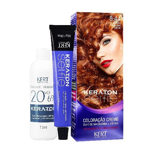A Coloração Kert Keraton Selfie 8.44 Louro Claro Acobreado Intenso promove uma cobertura impecável dos cabelos. Sua fórmula contém macadâmia, ômega 3, ômega 7 e cistina. Proporciona proteção, hidratação, além de deixar os fios macios e brilhantes.