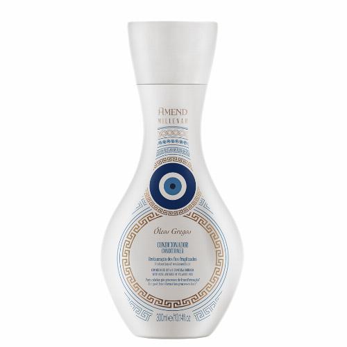 Inspirados no conhecimento milenar do povo grego que buscava inspiração na beleza divina, desenvolvemos um condicionador com alto poder emoliente. Sua fórmula combina os óleos de oliva e de camelina dourada ao Pro-Biofilm Complex** que combatem e previnem danos causados por processos de transformação, tais como *descoloração, relaxamento ou alisamento, proporcionando brilho e hidratação profunda aos fios e atuando na reparação dos danos da fibra capilar. Livre de Petrolato, Parabenos e Corantes. Dermatologicamente testado.