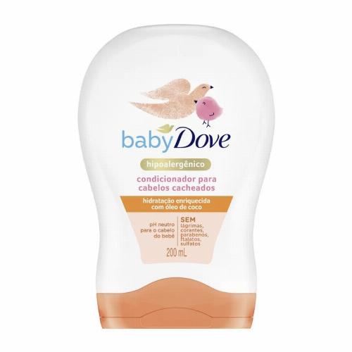 O Condicionador Baby Dove Cabelos Cacheados Hidratação Enriquecida 200ml é indicado para repor a hidratação do couro cabeludo, enquanto condiciona de forma suave os cachinhos do seu bebê. Possui fórmula com óleo de coco, rico em triglicerídeos e vitamina E, ingredientes perfeitos para promover um excelente condicionamento e hidratação dos cabelos. Além disso, a fórmula foi especialmente desenvolvida para uso em bebês: é hipoalergênica, ph balanceado, sem lágrimas e testados por dermatologistas e pediatras.