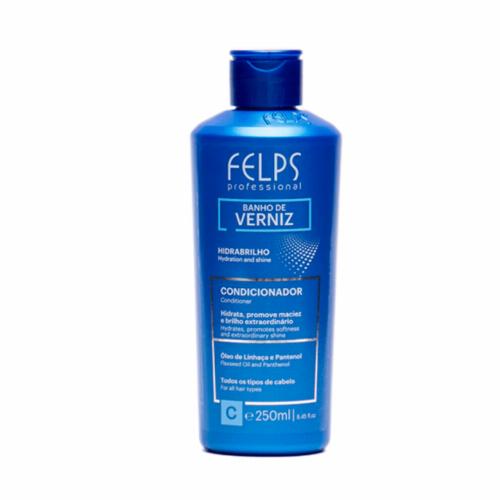 O Condicionador Felps Banho de Verniz 250ml é ideal para desembaraçar, recuperar e hidratar todos os tipos de cabelo. Possui fórmula com d-phantenol, semente de linho e vitamina E, que promovem uma ação antioxidante e emoliente, que dão vida e movimento natural aos fios.