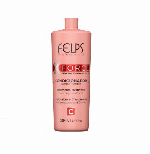 Condicionador Felps Xforce, tratamento enriquecido com Biotina, óleos de rícino e coco, Beauplex VH (blend de vitaminas E, C, B3, B5 E B6) para uma ação antiquebra instantânea, resultando em crescimento, força, fios saudáveis, brilho e maciez.