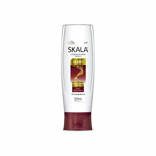 O Condicionador Skala 12 em 1 Restauração Espetacular 325ml possui fórmula enriquecida com vitamina E e d-panthenol, que promove uma restauração profunda nos cabelos. Combate o ressecamento, pontas duplas, opacidade, quebra, aspereza, desidratação, porosidade e perda de vitalidade dos fios.