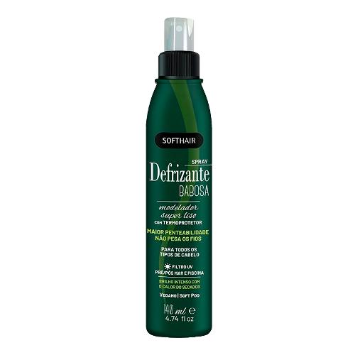 O Defrizante Soft Hair Spray Babosa 140ml é ideal para uso em todos os tipos de cabelo. Possui efeito mousse modelador, que oferece efeito termoprotetor e aumenta a hidratação dos cabelos. Conta com fórmula enriquecida com babosa e aloe vera, que potencializa a hidratação dos fios e oferece ação antifrizz e anti UV.