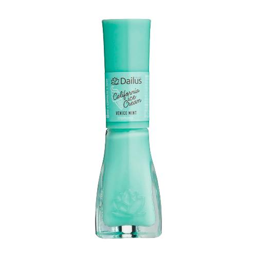 O Esmalte Dailus California Ice Cream Venice Mint oferece alta cobertura e acabamento cremoso e brilhante. A coleção, toda em tons pastéis, é inspirada na doçura dos sorvetes e no charme californiano. Possui tampa anatômica e pincel big flat brush, que facilita a esmaltação. Seca rápido e tem longa durabilidade.