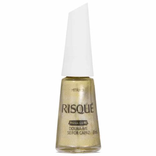 O Esmalte Risqué Metálico Doura-me Se For Capaz entrega um dourado metálico incrível, com efeito espelhado e muito brilho, perfeito para quem ama unhas sofisticadas e cheias de atitude.