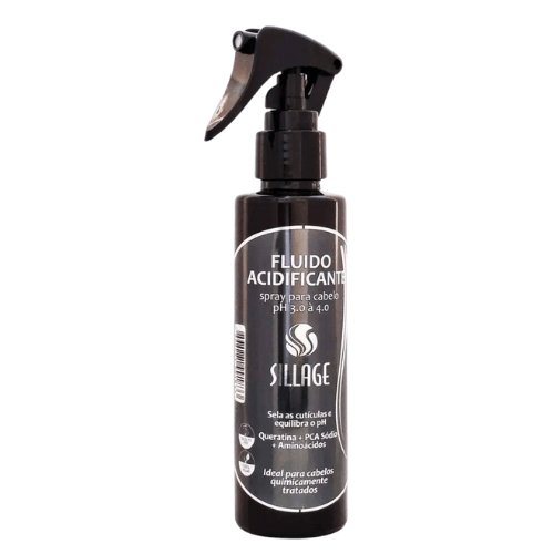 O Fluído Acidificante Spray para Cabelo Sillage sela as cutículas, reconstrói as fibras e regula o pH. Combate a porosidade do cabelo promovendo brilho e reduzindo o frizz. Sua fórmula enriquecida com queratina hidrolisada, PCA sódico e aminoácidos, promovem força e resistência e hidratam naturalmente. Use uma vez por semana ou sempre que sentir necessidade.