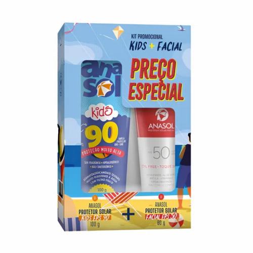 O Kit Anasol Protetor Solar Kids FPS 90 + Facial FPS 50 é a solução completa para manter sua pele protegida dos raios solares. Composto por um Protetor Solar Kids FPS 90 de 100g e um Protetor Solar Facial FPS 50 de 60g, esse conjunto oferece alta proteção contra os danos causados pela exposição ao sol, garantindo segurança e cuidado para a sua pele.