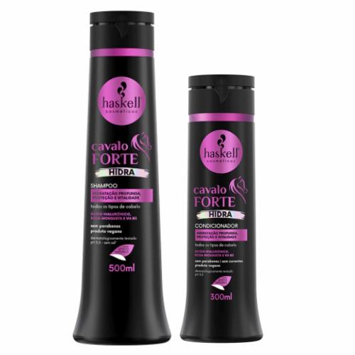 Nos cabelos molhados, aplique o shampoo, massageando o couro cabeludo em suaves movimentos circulares. Enxágue bem. Se necessário, repita a aplicação, após lavar os cabelos, aplique o condicionador uniformemente, do comprimento às pontas. Massageie suavemente e deixe agir por 1 minuto. Enxágue bem. O uso do condicionador também é indicado após máscaras de tratamento, para promover maior selamento das cutículas. Potencialize os resultados utilizando toda a linha Cavalo Forte Hidra.