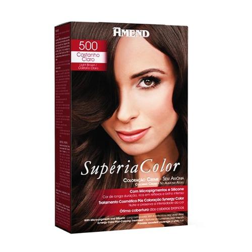 O Kit Tonalizante Amend Supéria Color 500 Castanho Claro proporciona um tom vibrante. Não possui amônia, e sua fórmula em creme não agride ou resseca os cabelos. Cobre até 50% dos fios brancos, com ativos que penetram na fibra capilar proporcionando um brilho intenso, reflexos naturais e proteção da cor. Contém tratamento nutritivo que mantém integridade e maciez.