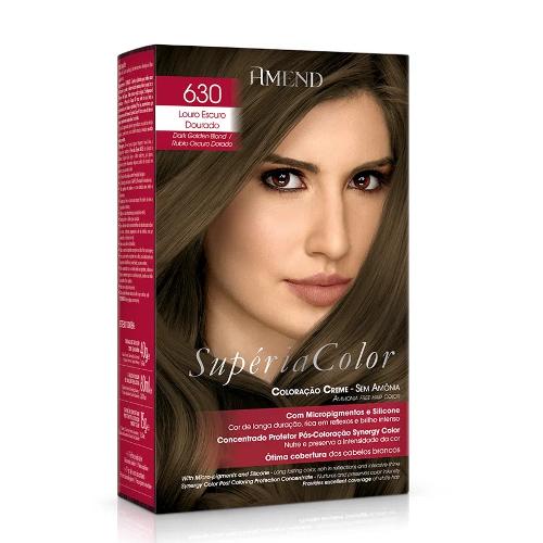 O Kit Tonalizante Amend Supéria Color 630 Louro Escuro Dourado proporciona um tom vibrante. Não possui amônia, sua fórmula em creme não agride ou resseca os cabelos. Cobre até 50% dos fios brancos, com ativos que penetram na fibra capilar proporcionando um brilho intenso, reflexos naturais e proteção da cor. Contém tratamento nutritivo que mantém integridade e maciez.