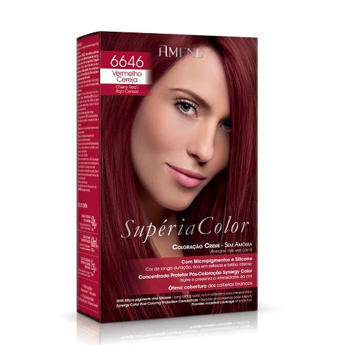 O Kit Tonalizante Amend Supéria Color 6646 Vermelho Cereja proporciona um tom vibrante. Não possui amônia, sua fórmula em creme não agride ou resseca os cabelos. Cobre até 50% dos fios brancos, com ativos que penetram na fibra capilar proporcionando um brilho intenso, reflexos naturais e proteção da cor. Contém tratamento nutritivo que mantém integridade e maciez.