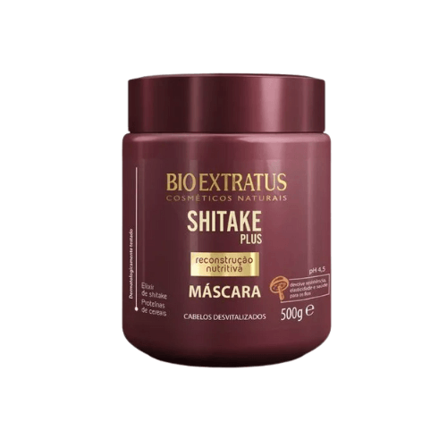 A Máscara Capilar Bio Extratus Shitake Plus 500g é ideal para uso em cabelos desvitalizados. Devolve a resistência, elasticidade e a saúde aos fios. Possui fórmula enriquecida com o poder nutritivo do elixir de shitake e proteínas de cereais, que promovem brilho máximo, reparo da estrutura capilar e reconstrução aos cabelos.