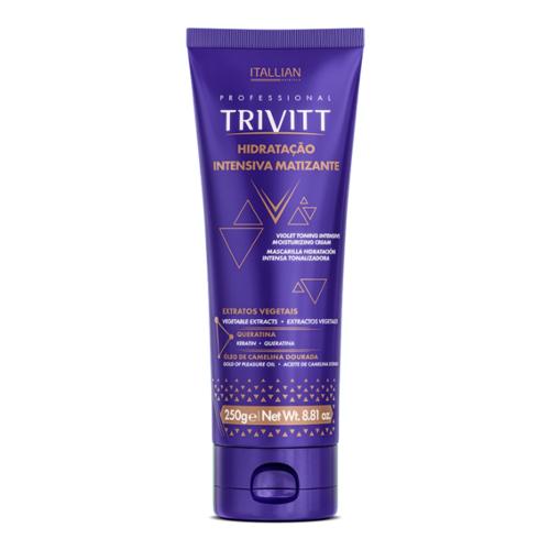 A Máscara Capilar Itallian Hairtech Trivitt Hidratação Intensiva Matizante 250g é indicada para cabelos louros. Sua fórmula possui extratos vegetais, queratina, óleo de camelina dourada e silicone. Proporciona matização instantânea, hidratação e revitalização dos fios.