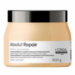 Máscara de tratamento para cabelos danificados. L'Oréal Professionnel Serie Expert Absolut Repair Gold Quinoa + Protein faz uma restauração completa nos fios para devolver saúde e brilho ao cabelo.