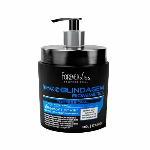 A Máscara de Reparação Forever Liss Blindagem Biomimética 500g possui fórmula composta por um blend de ativos, proteínas e vitaminas que possuem ação antioxidante, formando um filme protetor nos cabelos e deixando-os mais disciplinados e suaves.