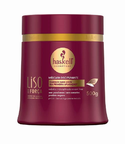 A Máscara Haskell Liso Com Força 500g para cabelos lisos e com frizz. Haskell Liso com Força Máscara melhora a elasticidade e a resistência dos fios. Deixa o cabelo mais liso e disciplinado desde a primeira aplicação.