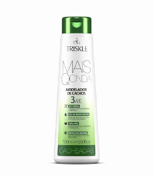 O Modelador de Cachos Triskle Mais Q Onda Cacheadas 500ml possui fórmula rica em óleos vegetais que auxiliam a saúde e hidratação dos cabelos. Define os cachos, ajudando na retenção de água dos fios, proporcionando brilho intenso. Protege o cabelo contra os danos dos raios UV. Pode ser usado para misturas com gelatinas ou óleos vegetais para potencializar a definição e hidratação dos cachos.