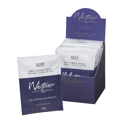 O Pó Descolorante Kert Whitener Violet E Shine Dust Free 50g foi especialmente desenvolvido para ser utilizado em técnicas de descoloração. Sua fórmula enriquecida com silicone preserva a umidade do fio enquanto ativa a descoloração. Possui rápido efeito, clareando de forma gradual e progressiva.