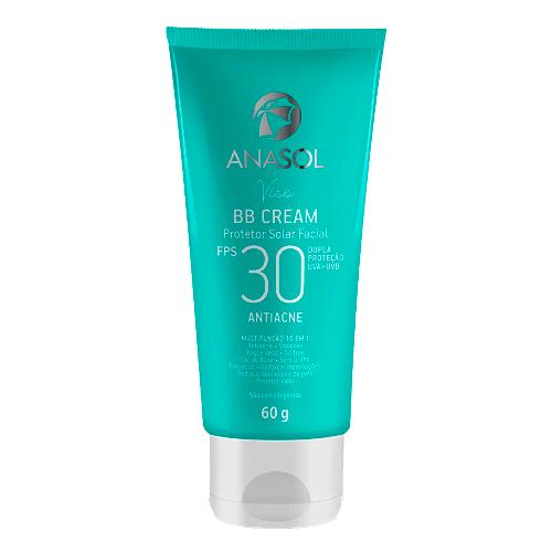 O Protetor Solar Facial Anasol BB Cream Antiacne FPS30 60g proporciona uma pele protegida e uniformizada. Sua fórmula possui ativos que disfarçam as imperfeições, protegem contra os raios UVA/UVB, previnem o envelhecimento e combatem a oleosidade. É indicado para peles altamente sensíveis a queimaduras solares. Produto não comedogênico.