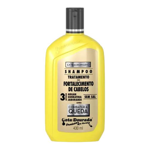 O Shampoo Gota Dourada Fortalecimento Extraordinário 430ml é ideal para proporcionar fortalecimento e regeneração dos fios, desde o bulbo capilar, combatendo a queda e deixando os fios macios, revitalizados, nutridos e mais resistentes. Possui fórmula enriquecida com óleo de argan, queratina e extrato de jaborandi que promovem resultados extraordinários.