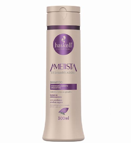 O Shampoo Haskell Ametista 300ml deixa o loiro bonito de novo, com a cor realçada e sem tons amarelos. Já os grisalhos e brancos ficam com a cor uniformizada e o brilho revitalizado.
