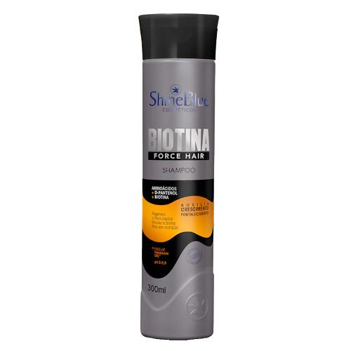 O Shampoo Shine Blue Biotina Force Hair 300ml é ideal para cabelos quebradiços, enfraquecidos e com lento crescimento. Conta com fórmula enriquecida com d-pantenol, biotina, óleo de rícino e aminoácidos que tratam os cabelos desde o primeiro uso.