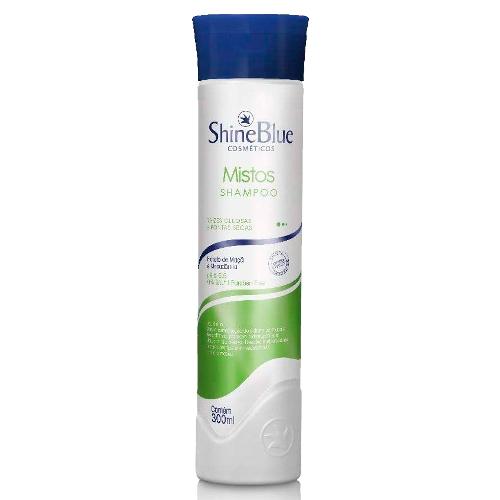 O Shampoo Shine Blue Mistos 300ml é indicado para uso em cabelos mistos, ou seja, aqueles que tem as pontas ressecadas e a raiz oleosa. Elimina o aspecto pesado dos fios, controlando o volume e hidratando as pontas secas. Possui fórmula com extrato de maçã e óleo de macadâmia, que hidratam e nutrem os cabelos, deixando-os com brilho e maciez.