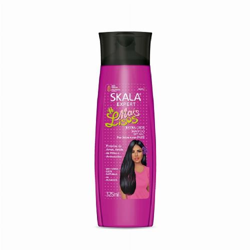 O Shampoo Skala Liso Desmaiado Extra Lisos 325ml possui em sua fórmula ativos poderosos que dão o famoso efeito desmaiado aos fios, deixando-os soltos, lisos e sem frizz. Conta com vitamina E, d-panthenol, proteínas de arroz e silicone que formam uma película protetora ao redor do fio, promovendo menos volume e cabelos totalmente alinhados.