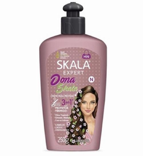 Creme para Pentear 3 em 1 Dona Skala, Skala É Ideal para Cuidar dos Cabelos, com Protetor Térmico e Hidratante Diurno, sem Enxágue. Nutrição e Brilho sem Pesar Os Fios para Cabelos Lisos e Ondulados.Ação/ativos:Sua Fórmula É Enriquecida com Complexo de Óleos Vegetais, Ativos Que Ajudam a Fortalecer, Hidratar, Dar Brilho e sem Pesar Os Fios, Podendo Ser Utilizado Tanto Como Creme de Pentear Quanto Como Creme de Tratamento. Imagem Meramente Ilustrativa. o Produto Pode Ter Variação de Cor ou Desenho, Porém As Características Gerais São As Mesmas Especificadas na Descrição do Produto.Modo de Usar:Aplique Nos Cabelos Úmidos e Penteie Como de Costume. Não Necessita Enxágue. Este Kit Contém: 01 Unidade de Skala Dona Skala Creme P/ Pentear 250g