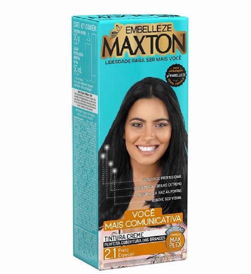 A Tinta de Cabelo Maxton 2.1 Preto Especial é indicada para uso em todos os tipos de cabelo. Formulada com ativo de proteção Max Plex, que permite atingir o tom desejado de maneira segura, preservando a estrutura dos fios. Oferece cobertura perfeita dos brancos.