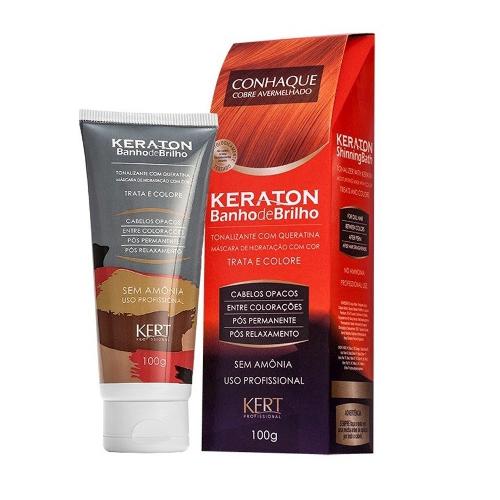 O Tonalizante Kert Keraton Banho de Brilho Conhaque 100g é indicado para cabelos opacos, podendo ser utilizado entre as colorações e após procedimentos químicos de alisamento. É uma máscara hidratante e tonalizante, deixando uma cor revigorada nos cabelos. Este produto não contém amônia ou oxidantes, proporcionando um brilho intenso sem agredir os fios.