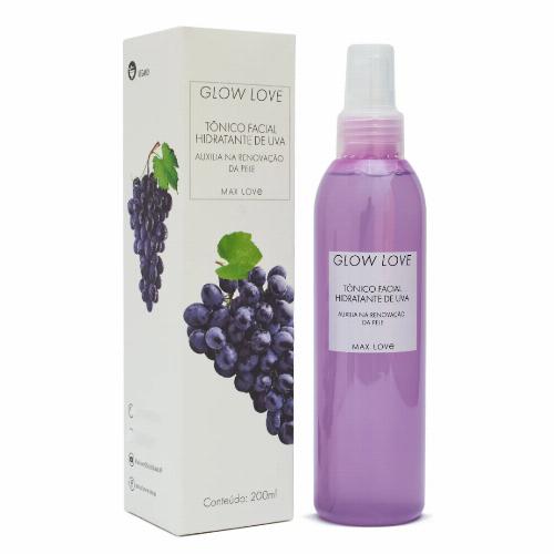 O Tônico Facial Vegano Glow Love Hidratante de Uva Max Love auxilia na renovação da pele enquanto hidrata e revitaliza. Com ácido hialurônico, extratos de aloe vera e uva, niacinamida e vitamina E, sua fórmula equilibra, suaviza e proporciona um glow saudável.